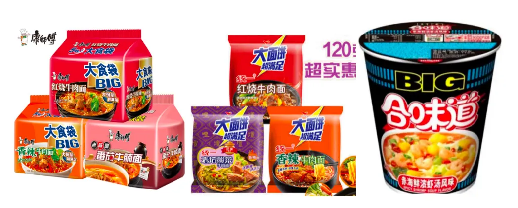 今麦郎推出一桶半、一袋半后,对行业造成很大冲击,随后统一推出大面饼,白象推出多半桶/多半袋,连方便面行业鼻祖日清都“坐不住”了,推出大杯装,加剧方便面市场竞争。