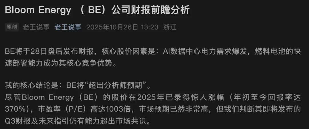 在上周,我就发了Bloom Energy的财报前瞻,预测会超出预期。