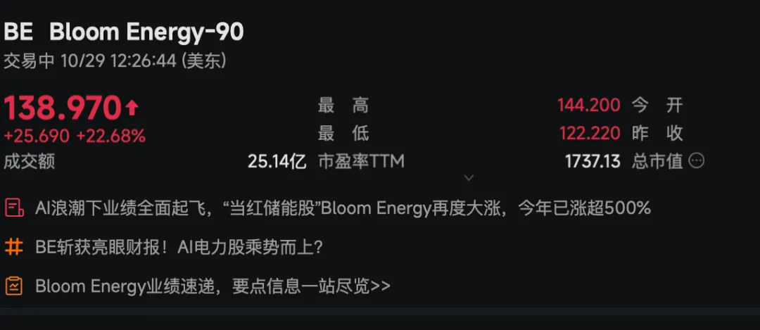 Bloom Energy公布了远超市场预期的2025年第三季度财报,在人工智能(AI)数据中心强劲需求的推动下,公司营收创下历史新高,且非GAAP盈利能力大幅改善。受此强劲业绩及乐观展望提振,公司盘后股价大幅上涨。