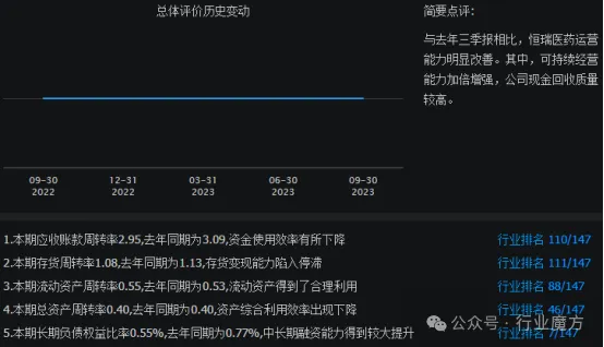 与2022年3季报相比,2023年3季报,恒瑞医药运营能力明显改善。其中,可持续经营能力加倍增强,公司现金回收质量较高。
