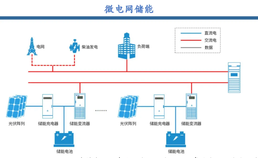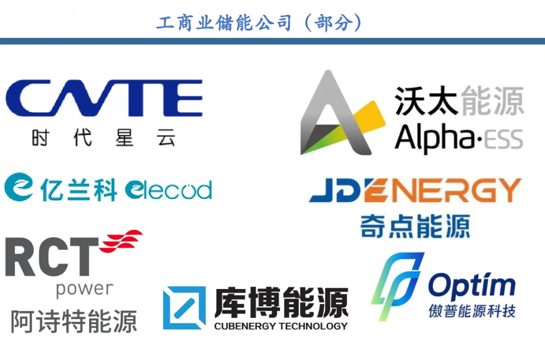 单独配置储能:通过削峰填谷为企业节约用电费用或作为备用电源使用,主要应用于工厂、商场等。光储充一体化:在有限的土地上建设光储充一体化电站,采用屋顶和停车场雨棚光伏,配置储能系统后,实现“自发自用、余电存储”,有效缓解充电桩负荷对电网冲击。微电网+储能:微电网被看作电网中的一个可控单元,在数秒钟内反应来满足外部输配电网络的需求,可满足一片电力负荷聚集区的能量需要,如:海岛、远郊居民区和工业园区等。如果在负荷集中的地方建立微电网,并利用储能系统储存电能,当出现短时停电事故时,储能系统就能为负荷平稳地供电。对离网型微电网,储能可以平滑新能源发电和作为备用电源使用;对并网型微电网,储能的主要作用是实现能源优化和节能减排。参与企业众多但竞争格局尚未完全打开。现阶段规模较大的工商业储能企业包括时代星云、沃太能源、库博能源、奇点能源等,工商业新锐企业包括亿兰科电气、傲普新能源、阿诗特能源等,当前各企业的竞争壁垒尚不明显。