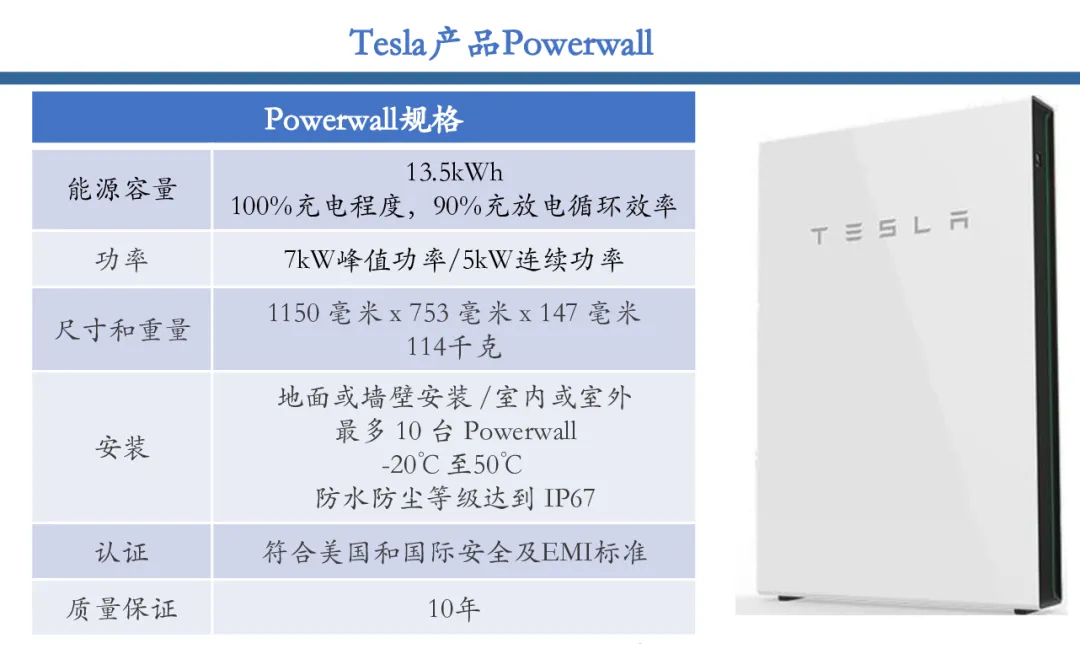 主流产品容量约200kWh。国内工商业储能主流产品容量170-220kWh ,同时搭配70-110kW的功率配置,形成满充满放2小时的能量存储时间,容量的设计与Tesla的Powerwall产品相似。部分企业主推1000kWh产品,瞄准园区等客户。而出口海外的工商业储能多以300+kWh产品为主。