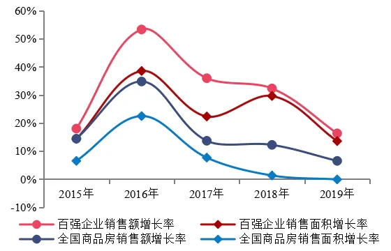 百强企业2015-2019年销售增长情况