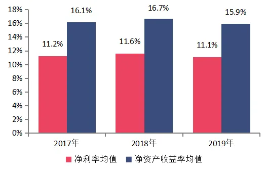百强企业2017-2019年净利润率及ROE情况