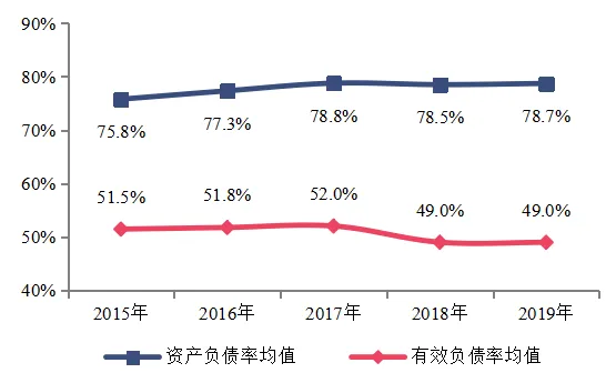 百强企业2015-2019年负债率情况