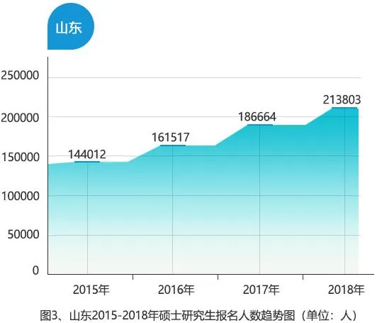山东作为生源大省,2018年考研人数达213803人,同比增长14.54%,为历年最多。