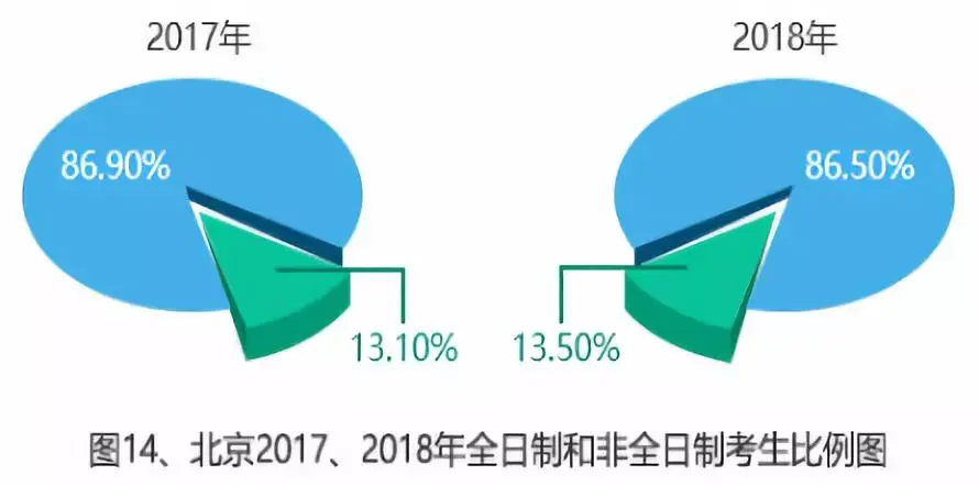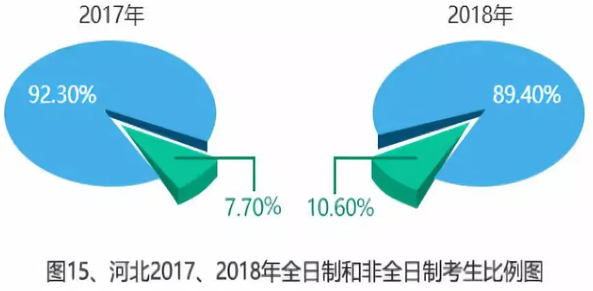全日制和非全日制统一招生两年以来,报考非全日制的考生占比逐年增多。