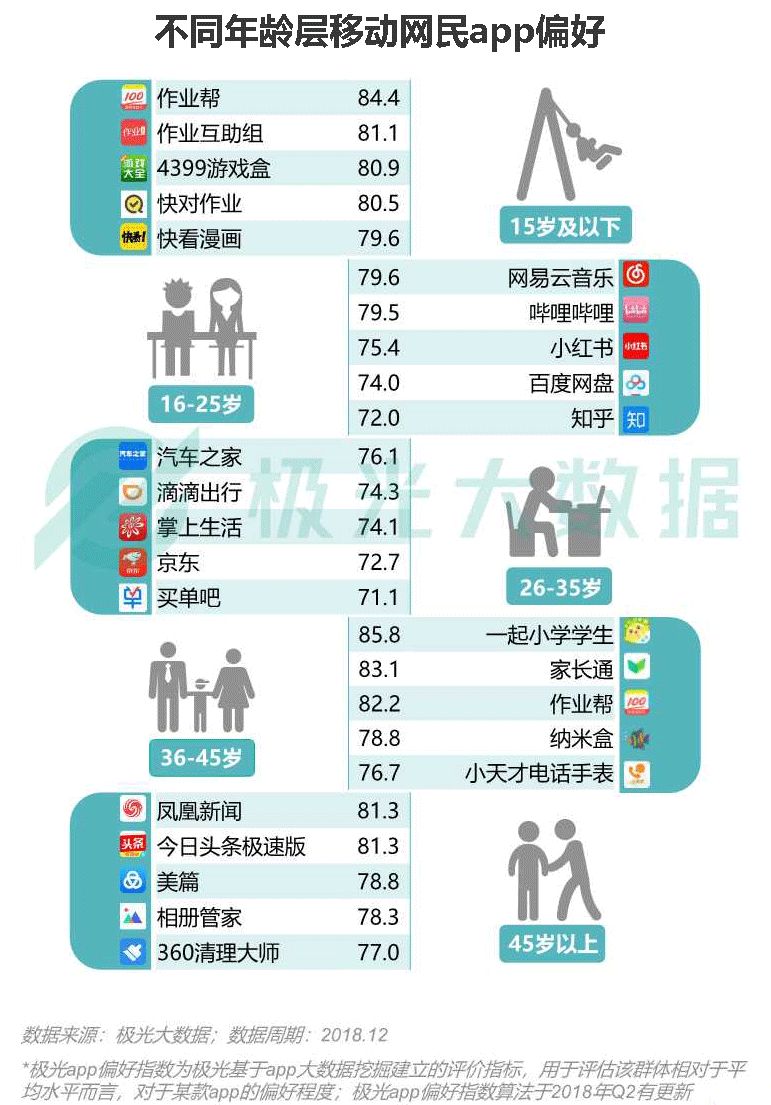 不同年龄层移动网民app偏好
