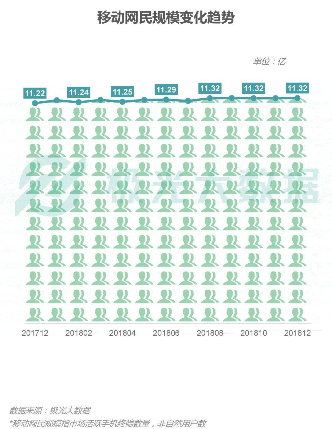 中国移动网民整体规模在过去一年里波动上升至11.32亿后,基本维持不变