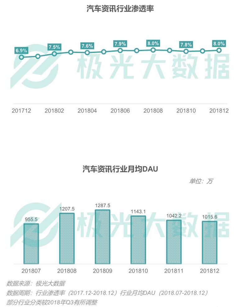 汽车资讯行业渗透率及月均DAU