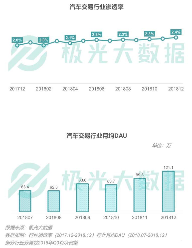 汽车交易行业渗透率及月均DAU