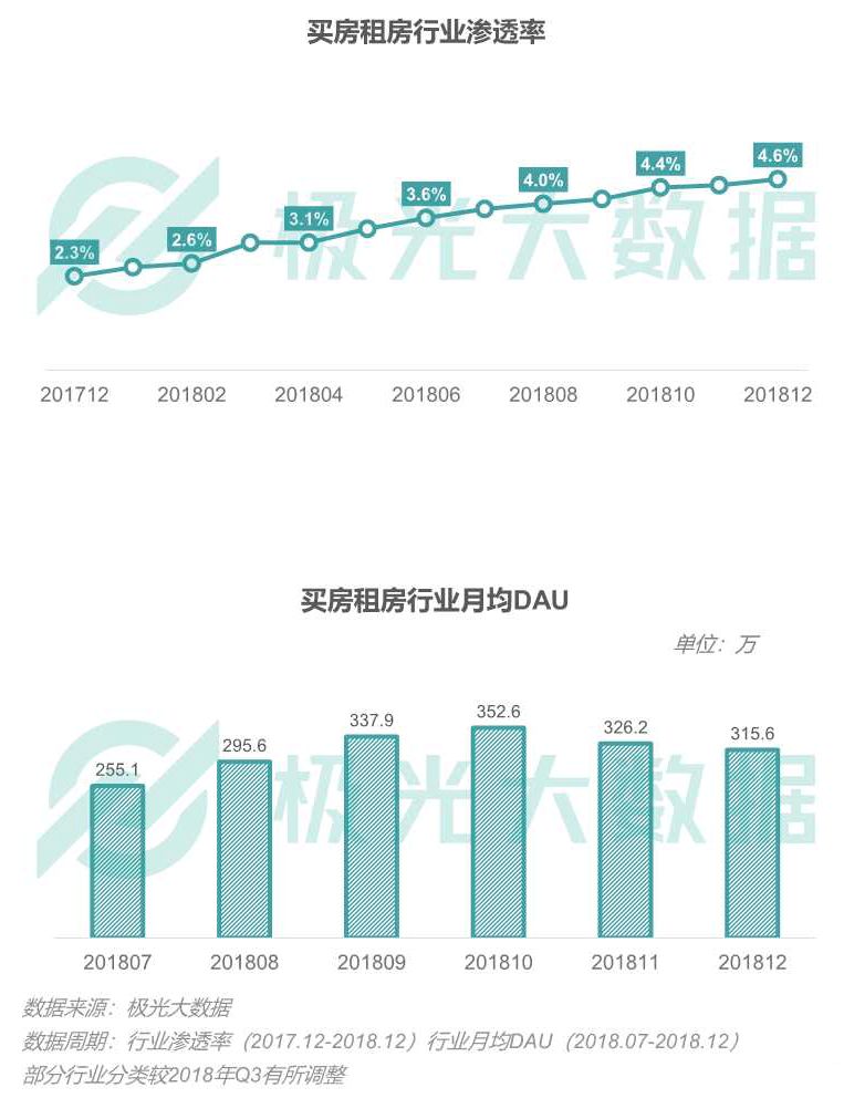 买房租房行业渗透率及月均DAU