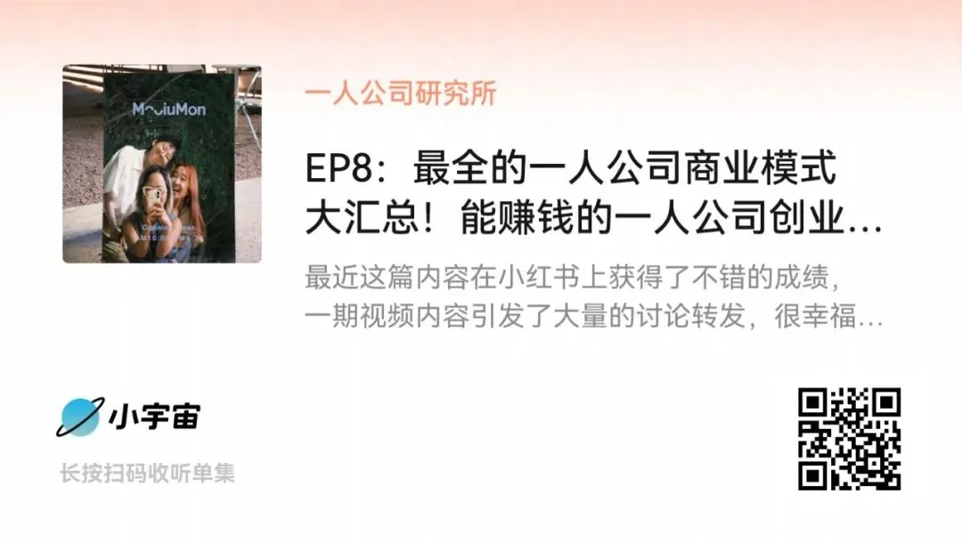 但今年我发现,我真的对自己想做的事情有足够的耐心,像一人公司播客的商业模式,是我想了快十年的。