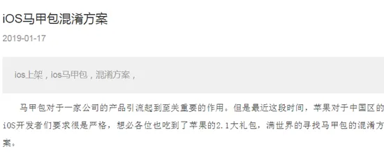 虽然苹果在2017年开始加强打击马甲包。但办法总比困难多,买量公司又通过技术手段与苹果斗智斗勇。