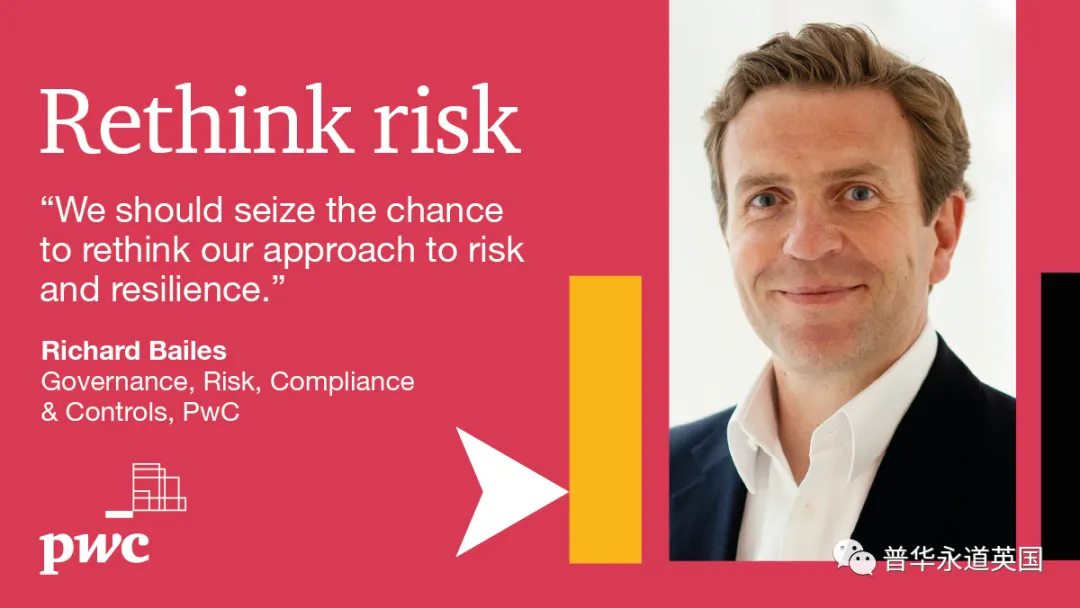 新冠疫情的出现标志着一种新型风险的诞生,其特征包括突发性强、影响范围广、持续时间长等,对社会与经济的破坏和影响程度极其深远。这种不可预知的新型风险也意味着在全球范围内,对危机的认识和管控需要提升到一个新的高度。2021年普华永道在全球73个国家和29个行业对2814家企业的CEO和管理层进行了针对全球危机的调查,其中有73%受访企业表示受到了新冠疫情的负面影响,涉及合规、运营、人员、财务、战略、税务等方面。高达95%的受访企业认为其危机管理和风控水平尚有提升空间。在重大突发事件中,企业如何具备抵御危机的韧性,对风险进行有效的应对和掌控,是管理者和决策者需要高度重视的议题。尤其是在当下疫情逐步减轻之际,企业应借机重新审视并总结在此次疫情过程中的经验教训,对企业的风险战略作一个完整详实的规划,提升企业韧性,以便在未来再度出现类似危机时能从容应对,化危为机。针对这一话题,英国普华永道风控、合规及公司治理合伙人兼中国业务部风险鉴证业务领导合伙人Richard Bailes与我们分享了他的一些思考与建议。