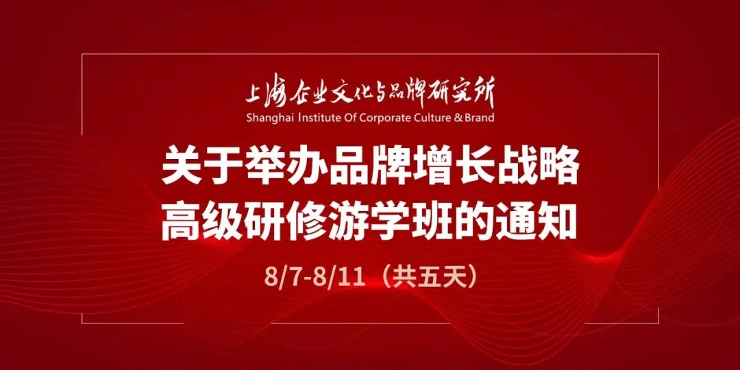 上海企业文化与品牌研究所作为国内企业品牌战略研究、咨询、培训的专业机构,拟定于2023年8月7日至11日(共五天)举办“品牌增长战略高级研修游学班”,举办地点为福建厦门、泉州等。