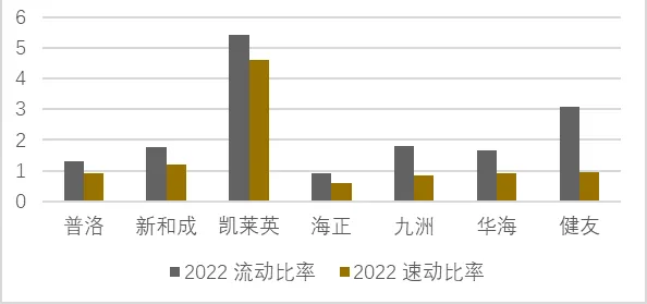 图5 同行业公司2022年流动比率和速动比率比较