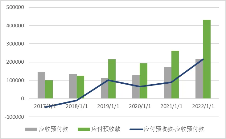 图7 普洛药业2017-2022年应付预收与应收预付