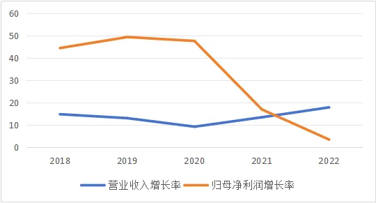 图16 普洛药业2018-2022年营业收入及归母净利润增长率