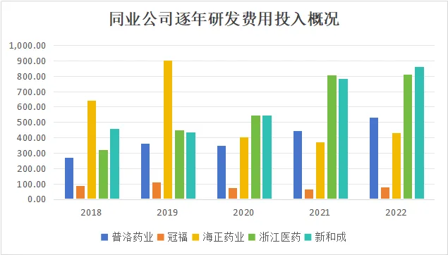 通过同业对比发现,普洛药业的研发投入处于行业中游位置,平均占营业收入的5%,研发投入保持稳定增长态势。