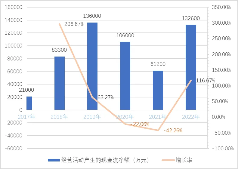 图18 普洛药业2018-2022年经营活动现金流净额