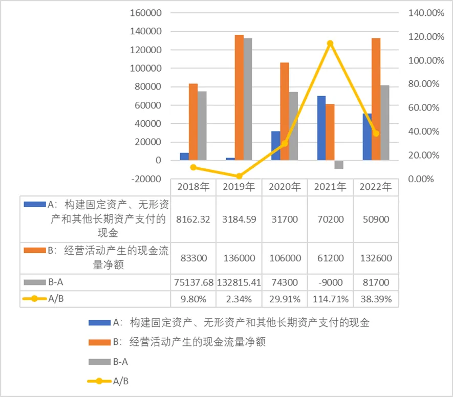 图19 普洛药业2018-2022年投资现金流与经营现金流的比较