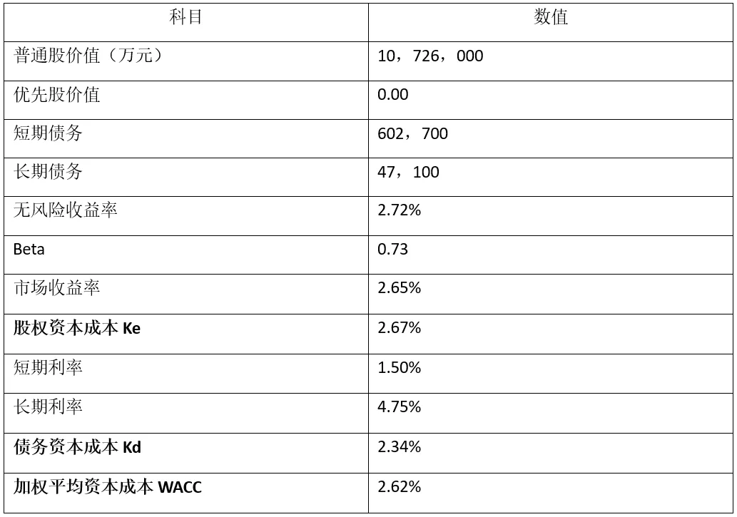 计算得出为20022年普洛药业股权资本成本为2.72%+0.73*(2.65%-2.72%)=2.67%。