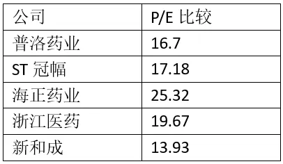 在对比公司选取层面,本组选择新和成、ST冠幅、海正药业和浙江医药四个与普洛药业为同样性质并互为竞争对手的四家医药企业,其中新和成占据行业优势地位。