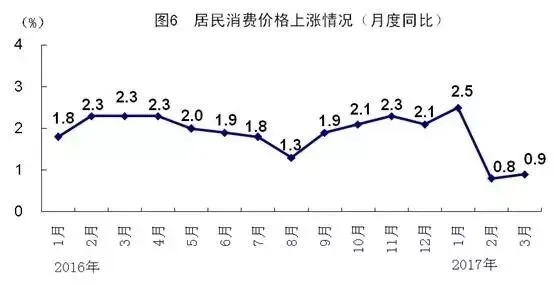 在食品烟酒价格中,粮食价格上涨1.3%,猪肉价格上涨0.9%,鲜菜价格下降18.8%。3月份,全国居民消费价格同比上涨0.9%,涨幅比2月份扩大0.1个百分点,环比下降0.3%。