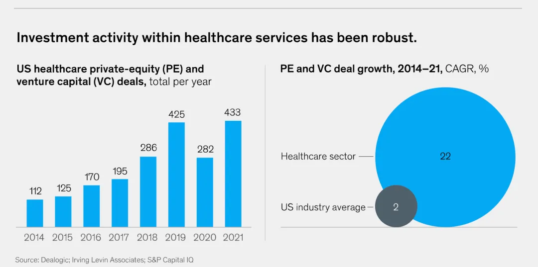麦肯锡收集了第14届年度医疗健康峰会发言人的亮点见解与麦肯锡过去的研究经验,经过分析得到了医疗健康服务领域未来十大前沿趋势,包括以患者为中心、虚拟健康服务、非住院护理、居家护理、基于价值的保险模式、由数据驱动的医疗服务、价格透明且可互操作、新兴医疗技术赋能的服务、私募股权投资的快速增长、集成而非分散的服务模式。