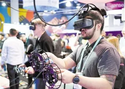 图为在美国拉斯维加斯举行的消费电子展上,一名观众体验基于虚拟现实技术的产品(资料照片)。