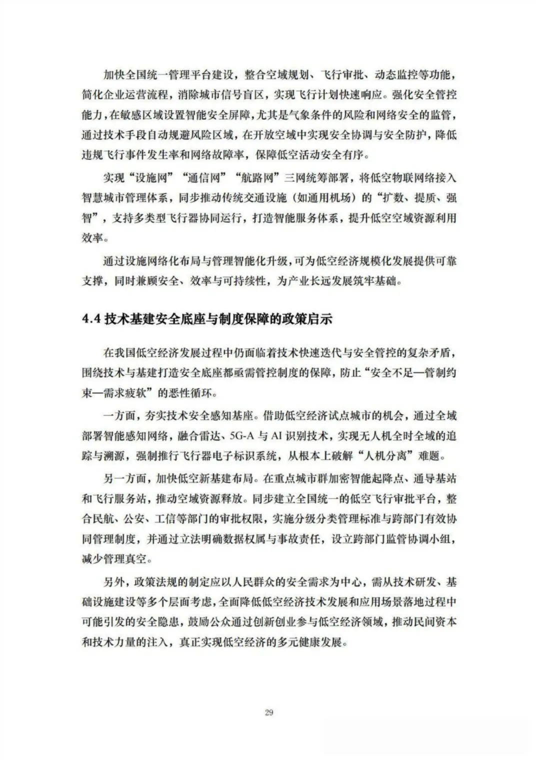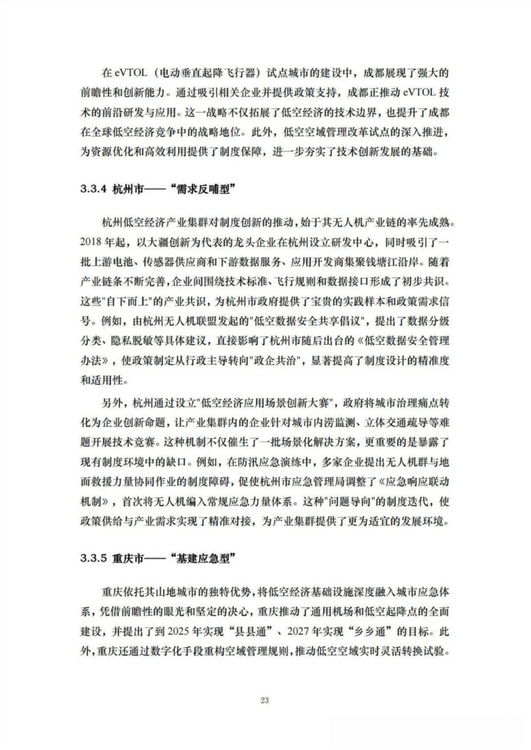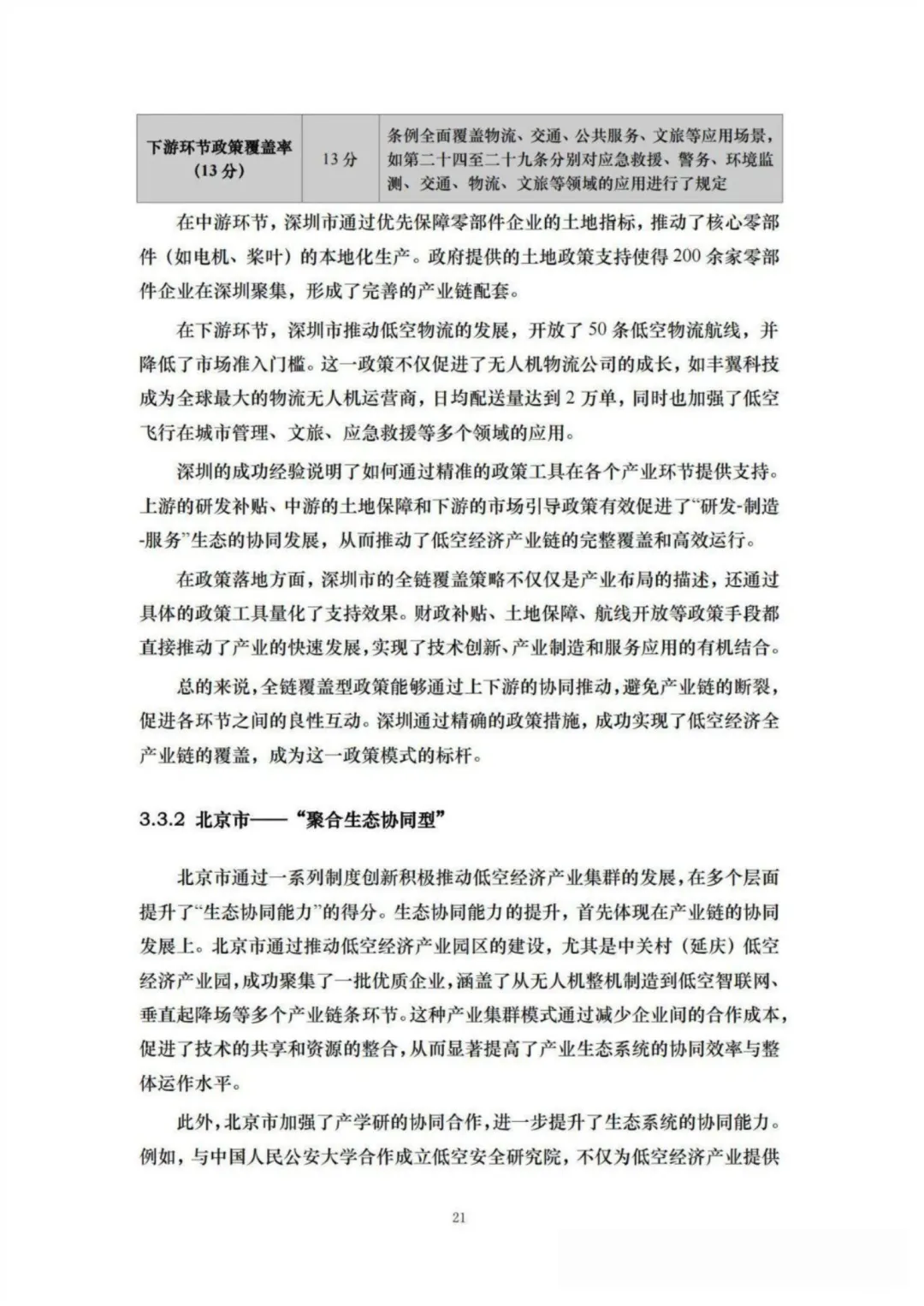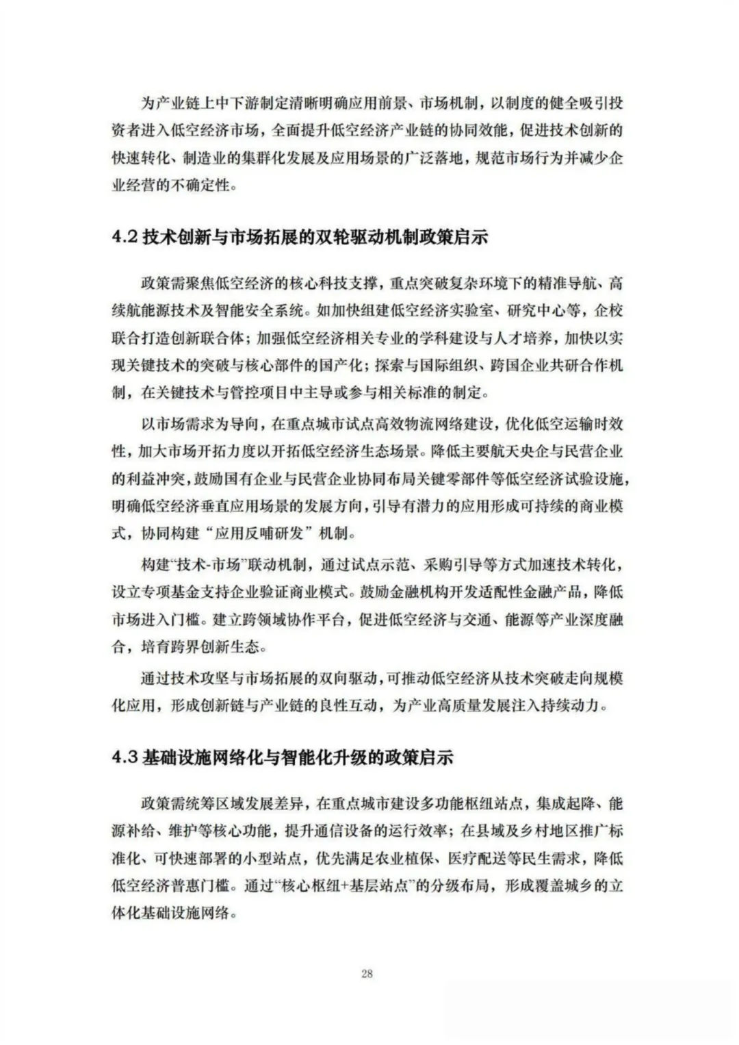 导读:报告构建技术创新、市场开拓、生态协同、政策赋能四大维度的 LCDI 评价体系,为产业发展提供参考。低空经济作为国家战略性新兴产业,涵盖航空器研发制造、基础设施建设、多元场景应用等完整产业链,已形成万亿级市场潜力。测评结果显示,深圳、北京、成都位列综合排名前三,分别代表政策全链覆盖、科研生态协同、链合试点驱动的发展模式。各地呈现产学研协同创新突出、标准建设加速、应用场景驱动制度创新等特征,但也存在基础设施与产业配套失衡、国际标准参与不足等问题。报告提出四大政策建议,包括全产业链协同支持、技术与市场双轮驱动、基础设施网络化升级、筑牢安全与制度保障底座。典型城市案例展现多元发展路径,为各地因地制宜布局低空经济提供实践借鉴。