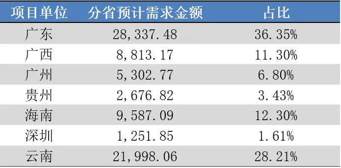 从各项目单位的投资力度看,本次招标的需求主要来源于广东和云南,分别占比36.35%和28.21%。
