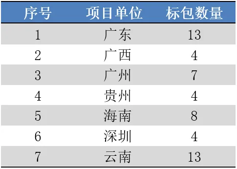 从各项目单位的标包数量分布情况来看,广东、和云南涉及13个标包。