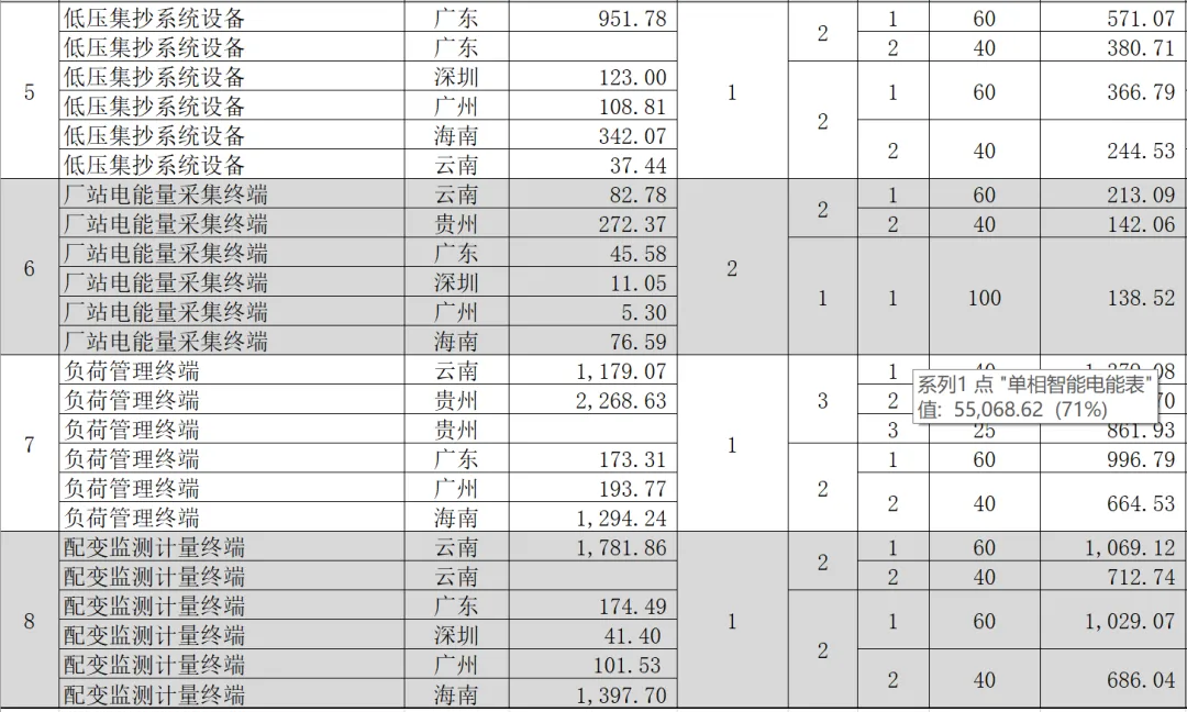 低压集抄系统设备:广东需求量最大,占比60.89%;主要来源于海南需求量占比也超过20%。