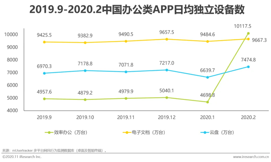 疫情为企业级SaaS带来流量,在今年2月宣布延期复工后,钉钉搜索量激增数倍,无论中大型企业还是小微企业都纷纷加入了远程办公的行列,协同办公SaaS获得了大量的“试用客户”,加快了市场激活的进程,但接下来,流量转化和用户留存成为后疫情时代的核心关注点。除协同办公,财税、电子签名、教育、医疗等行业也都迎来了丰富的流量资源,相比于流程管理软件,工具型SaaS产品日常应用频率更高,产品逻辑相对简单,能够更快地让用户体会到使用价值,因此轻量的工具型产品更易将流量转化为付费用户,发展路径逐渐清晰。