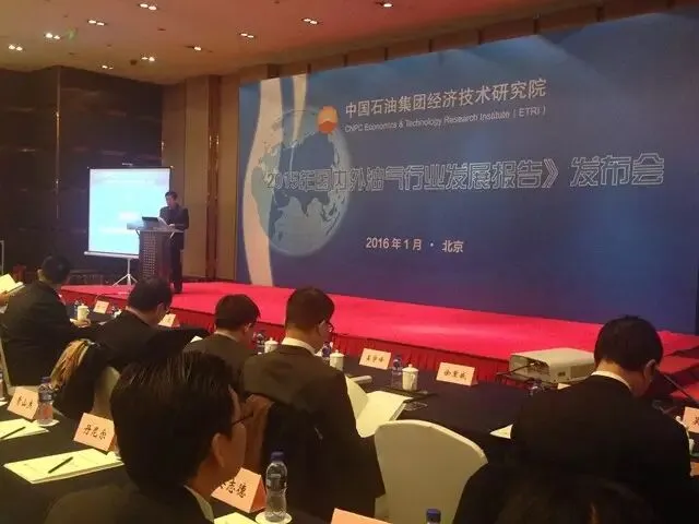 ▲《2015年国内外油气行业发展报告》发布会由中国石油经济技术研究院党委书记连建家主持。