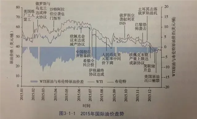 ▲2015年国际油价走势。