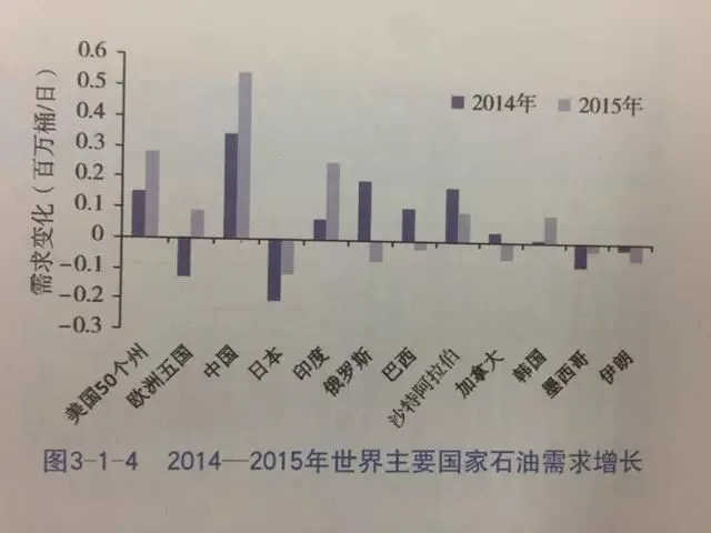 ▲2014-2015年世界主要国家石油需求增长。