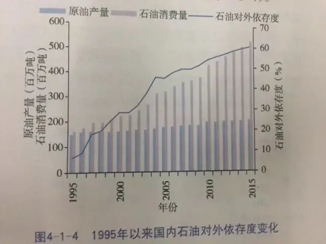 ▲1995年以来国内石油对外依存度变化。