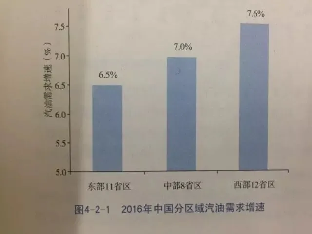 ▲2016年中国分区域汽油需求增速。