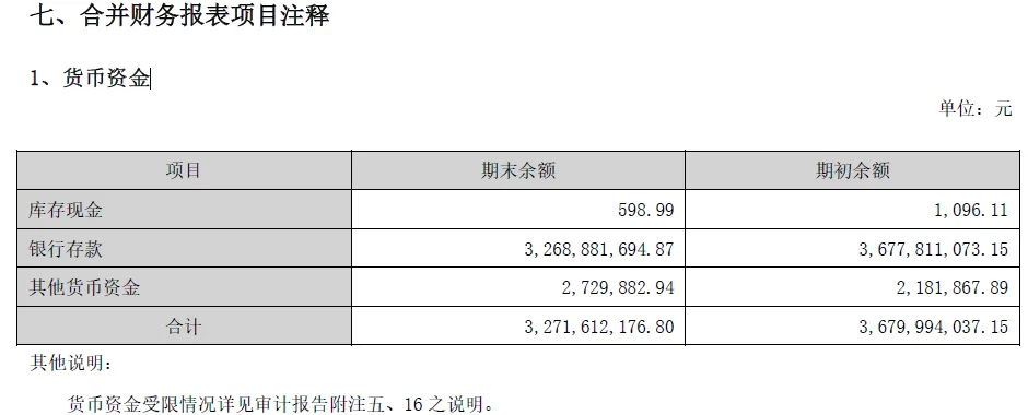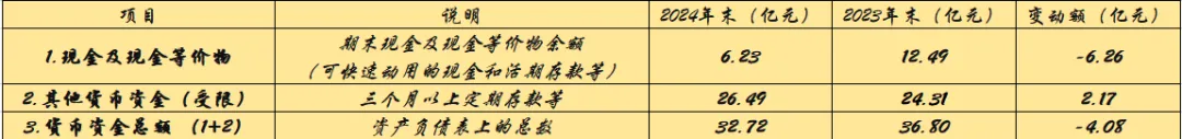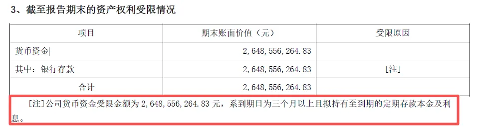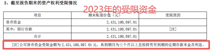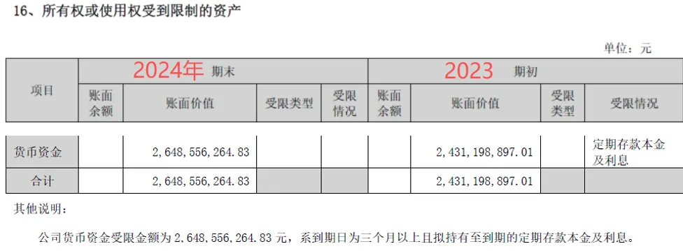 但同时,公司将部分资金(约2.18亿元)从可自由支配状态,转存为长期定期存款,导致“受限资金”从24.31亿增加至26.49亿。