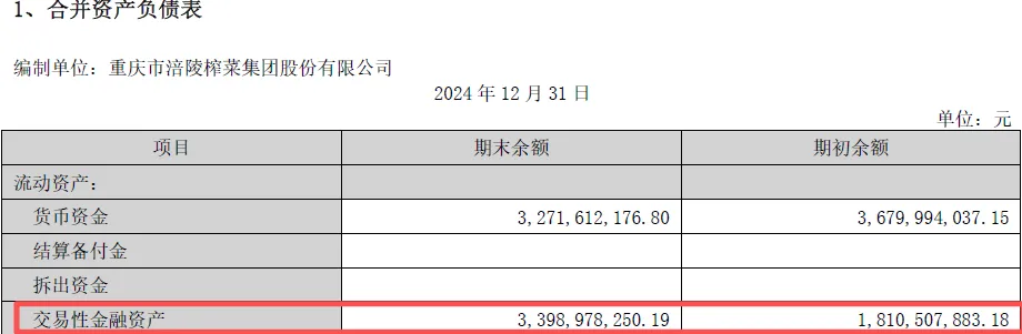 作为快消品行业龙头,涪陵榨菜货币资金占比显著高于一般制造业企业(通常15%-25%),说明其现金流充裕,经营稳健,具备较强的抗风险能力。