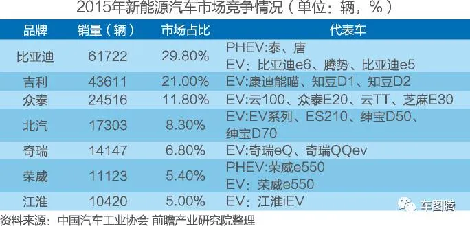2015年,新能源汽车销量前五名均为自主品牌,很多车企都已经实施新能源汽车战略,斥巨资布局新能源汽车领域,比亚迪、北汽、上汽等自主品牌已经在资本市场上募集资金用于研发新能源汽车。