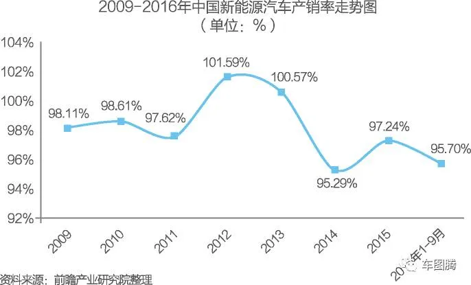 2009-2015年,我国新能源汽车产销率呈现波动性,范围在95%-102%之间。2015年,我国新能源汽车产销率97.24%,较上年提高了1.95个百分点。