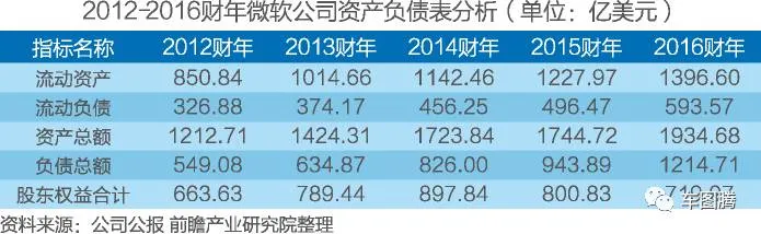 2016财年,公司资产总额为1934.68亿美元,同比增长10.89%;公司流动资产为1396.60亿美元,同比增长13.73%;公司负债总额为1214.71亿美元,同比增长28.69%;公司股东权益为719.97亿美元,同比减少10.10%。