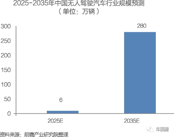 预计随着国外技术成熟度的不断提升,国内各车企参与无人驾驶汽车研发的积极性将会不断提高,据相关权威公司预测,到2035年全球无人驾驶汽车销量将达到1180万辆左右,而中国市场的份额约为24%左右,约为280万辆,其市场前景非常可观。