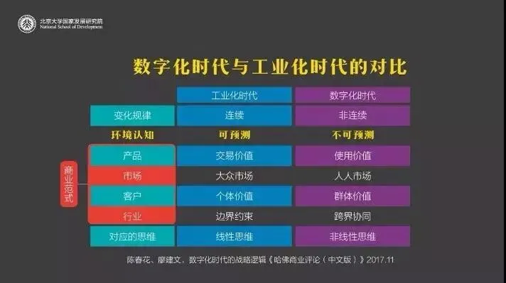 数字化时代与工业时代相比,我们最擅长的产品、市场、客户、行业四个基本商业范式都已发生改变。
