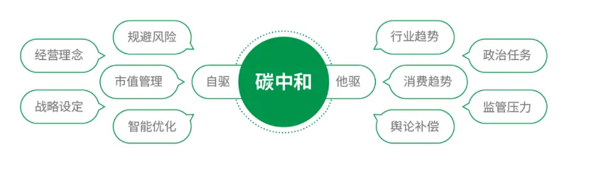 「碳中和」于企业而言有两类驱动力,一方面是前述的外在驱动力,包括: