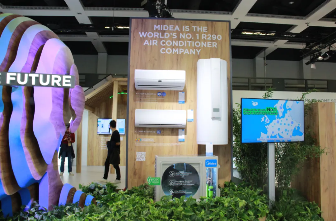 在美的展台,一片绿色让人心旷神怡,无论是R290绿色冷媒系列产品、1:1 还原健康好空气的鲜净感空气机、超 1 级能效微晶口感保鲜冰箱还是获得国家绿色产品认证的舒适肤感元气洗烘套装,都与本届IFA展可持续发展理念契合。
